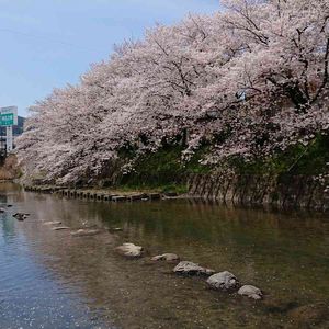近所の川沿いの桜です🌸満開です。今日はお天気が悪く風もあるので、すでに花筏ができていました。夜から悪天候になるみたいなので散らないうちなと。曇り空なのであまりきれいに撮れませんでした