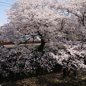 桜🌸出掛けた帰り道で出合いました。 「ソメイヨシノ」 であっていますか。 とても綺麗に満開でした。青空とよく合いますね。