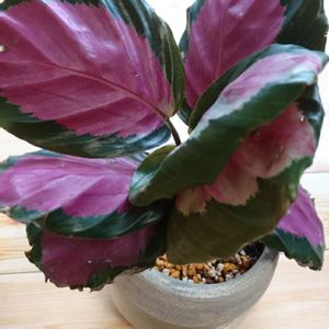 やっぱり我慢できなくてまた買ってしまった😅サイズも状態もよい子だから買って良かった! カラテアの葉っぱはみんな面白い絵の具で書いたみたい😁 緑色のところとピンクのところは成長すると分離するの?ってこれを見た友人に聞かれた(笑)確かに1枚の葉でこんなにくっきり色が違う植物って中々見ないかも💡
