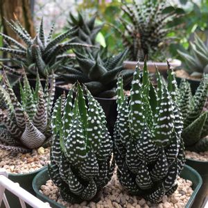 「ハオルチア 水車錦」 No. 2 まさかの3回連続での「水車」です💦 前回に続き斑入りでこちらはお初です 今は「瑠璃殿」「水車」達に気持ちが偏っていて 場所取りで「サンスベリア」達が負けそうです 今後は全体に少しずつ減らしていき厳選して お気に入りを残していこうと思っています