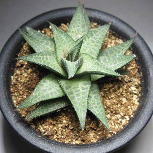 「ハオルチア 白蝶」 硬葉系つながりでアップ 縦方向に白い斑が筋状に入る「白鳥」と言う のもあるそうなので斑入りのバリエーション として欲しいなと思っていますがいまだに 見つけることができていません 気を長ーくして探したいと思います