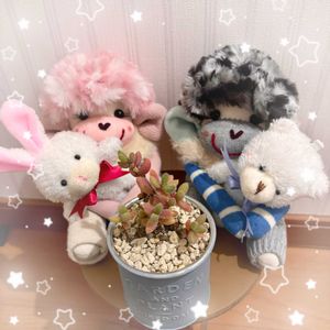 ご無沙汰しております🙇 皆様お元気にお過ごしでしょうか? 少しの間、GS、sns等自分の好きな事が出来る余裕がありませんでした💦 冠婚葬祭等諸々、父の介護と色々と重なりバタバタ忙しくなくしていました 多肉さんのお世話も‥ 昨年の11月から1月中頃まで出来ませんでした💦 いくつかはダメになってしまいましたが、ほとんど頑張っていてくれました❗️ 多肉の強さを改めて実感です👏 今年に入って少しずつ落ち着いてきたので、ゆっくり仕立て直ししながらGSの皆さんの投稿を拝見させてもらったり、投稿もしていきたいと思います❗️ またこれからもよろしくお願い致します🙇 ①枚目 昨年の9月に寄植えしたものです ユリリンさんから頂いたリメ缶に、9月に頂いた苗をピンクのリメ缶に。 葉挿しの白牡丹をブルーのリメ缶に植えました 今現在ほんのり紅葉してくれてます😍 下はかおりんさんのお花のモチーフのリメ缶に、昨年の3月後半に寄植えしたものが💦 ラブリーローズ等夏にダメになり、10月と2月の初めに仕立て直ししました エンジェルの羽缶は9月に頂いた苗をモリモリ入れさせてもらいました😅 いつも本当にありがとうございます🙇 ②枚目 けいこさんからのプレゼント企画で頂いたソクモンちゃんとロイラビに植えたハナさんの苗 今は小さいままですが、春には少し動きがありますように🙏 下はかえるさんのプレゼント企画 fukumomoさんのエンジェル鉢のブラックサバスとユリリンさんのハートのリメ鉢のシルエット かえるさんの赤い大きなリメ缶にはメデューサを植えてセダム等を足しました! 2月に植替え作業したので、無事に根付いて‥ 春に少しずつ大きく成長してくれますように🙏 ③枚目 昨年の10月 イベントでちまちま屋さんが初出店するというので娘と行ってきました❗️ お昼前頃行ったので欲しいセダムは売り切れていましたが‥ なかなか増やせない気になっていたドラゴンズブラッドとレッドベリーを購入しました 可愛いパンダ🐼さんと🐏さんも購入 GSのはなずきんさんのお友達がご一緒に販売されて居て、色々と説明して下さったりと有難く嬉しかったです🙇💕 クミピさんから頂いたハロウィン🎃の置物と一緒に❗️ モリモリの購入したセダムと撮りました📸 ドラゴンズブラッドは今は先っぽだけの寂しい感じになってしまいましたが💦 10月購入後帰ってすぐ増やす作業をしましたが、1番いい季節にお水をもらえずこんな感じですが、暖かくなったらまた増やせたらいいなーと思ってます❗️ やはり多肉事楽しいです❗️ 今は寒いので長時間は作業出来ませんが❄️ 父の介護の合間に楽しみたいと思います😊