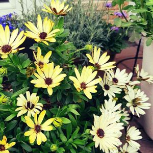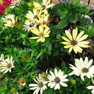 オステオスペルマム😊 と、うしろにローダンセマム😊 アンティークなコンビですねぇ。 だいすきだー
