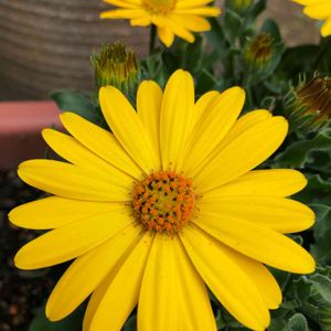 おはようございます🌅 オステオスペルマム グランドキャニオンミックス 「アキラ」です🌻😊 七色の花が咲くタグに惹かれ、お迎えしました😂 蕾がたくさんついているので楽しみです😊💕
