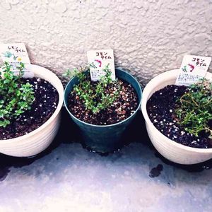 レモンタイムと、コモンタイム×2を植えました。 ウチで一番使うハーブ🌿 昨年虫に侵されサヨナラ。 先日クリーピングタイム買ってみたが、香りも違うので、ちゃんとコモンタイム買ってきた。 レモンタイムは皆さんの写真見て興味出てきたので買ってみました💛