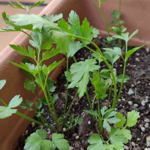 イタリアンパセリは常備。 スタンバイ組の3本です。 食す→種採る→種まく→食すのルーティンです。