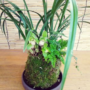 和蘭の草なぎと他のシダを苔玉にしてみました。どうかな?