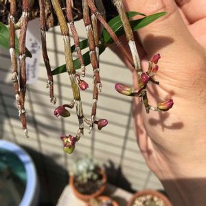 【成長記録】 奄美風蘭Vanda falcata 根っこブリ出し中のフウラン。秋になり、子株2つ出して、今は根出しに専念中らしく、あちこちからニョキニョキ。先っちょが艶めかしい色と質感で悶絶する。触らないけどね!