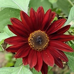 近所のひまわり畑で咲き始めたエンジ色の🌻🌻🌻