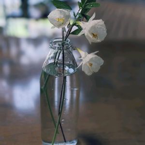 庭の鉢に咲いた原種水仙 ナルキサス アルストロメリアの葉と共に差してみました🤗