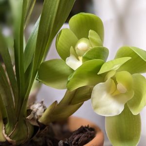 和蘭 空蝉さん開花です💕なかなか大株にはならないけど、気が向くと咲いてくれます😅トラシアナムの血を引くので香りもトラシアナムによく似てます❤️