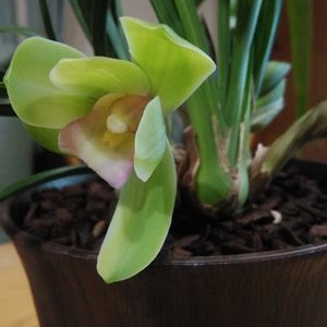和蘭’夕月夜’ 大ぶりな春蘭という感じ。春っぽい上品な香りが良いですね。 切り花にも向いていそうです。