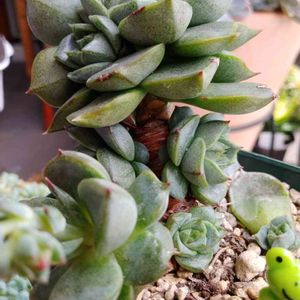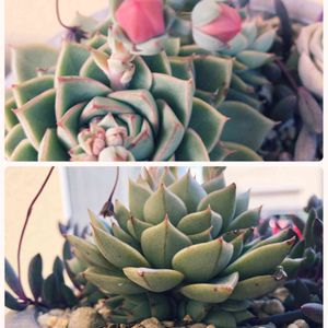 上📷左 紅大和 紅部分が皆無😆 上📷右 パーパソルム(プルプソルム) 3月にミキティちゃんに代買いを頼んだ子😁 写メを貰って、本物(笑)の大和錦‼️と思ったら、 植え替えで札をとったら、パーパソルムの下にglivaグリバと😳 大和錦の交配種だったぁ🤣 下📷は、真上から撮ったところ。 下右📷 我家に沢山ある100均のなんちゃって大和錦(*´艸`) 寄植えに必ず入ってる❣️ ツンツンとんがり大和錦に出会えるのは、いつだろう(⚭⚭)