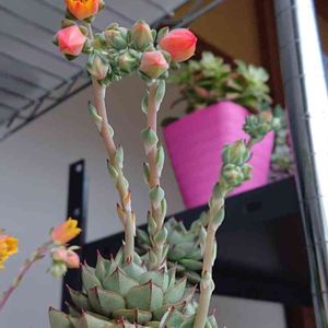 花芽をたくさん付けた多肉さんがここにも。😃🎶 エケベリア グリバ 棚の目立たないところに置いてあったけど、花が開き始めたので目にしやすいところへ持ってきました。😄🎶 花芽いっぱいの多肉さんを見つけ出して、今日もささやかな幸せを感じています。😊💗 うーん、今日何だか気分がいいのは、1周年バラと夢CLUBのリコママさんのプレ企画に当選したというお知らせがあったからです、実は。😆 リコママさん、ありがとうございます~❣️ (*^▽^*)✨ 頑張れ❗日本‼️ 👊✨