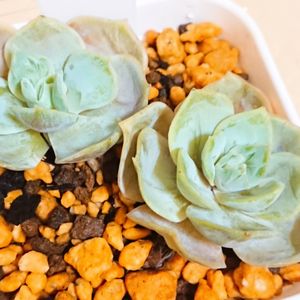 今晩は😃🌃 本日、初❗ アクセサリー教室で 《共同購入❤️ 秋の韓国苗6点 多肉丼🍜 土+底石付き》 2000円でお渡ししました😆 皆さんに 直接、苗を見てもらって 喜んで頂きました❤️ 私も楽しかったです✨ 上の寄せ植えが 内容のサンプルです💐 土も何を買ってきて 良いのか 分からないと 言われたので 土と底石も昨日買ってきて お裾分け❣️ 自宅で 多肉LIFEを楽しんで 貰えるように お裾分けでーす👍