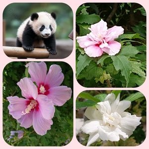 散歩道のお花 今日のお花ムクゲ✨🤍🩷 今日はパンダの日らしいので可愛い赤ちゃんパンダの写真を… 🏷️今日のお花 🏷️木曜日は桃色 🏷️木曜日は木に咲く花 🏷️パンダの日 🏷️コラージュ仲間達 🏷️コラージュして遊ぼ♡ 🏷️ピンクワールドへようこそ 🏷️純白マニア に参加します🎵