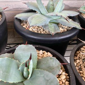 ALOHA🤙🏼🌴🌞🌺🌵🌈 アガベチタノタ 去年の夏にグランカクタスでチタノタ白鯨と一緒にGETした チタノタ品種不明です‼︎w😜 黒プラ鉢に植え替えるときに カキ仔が出来てた 取らずに埋めたけどまだニョキニョキして来ない🙈