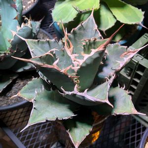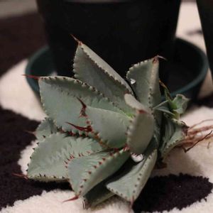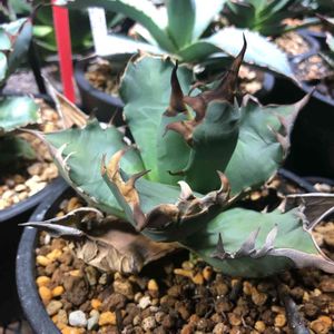 ALOHA🤙🏼🌴🌞🌺🌵🌈 agave titanita FO-76 compacta dwarf✨🤙🏼 おNEWアガベ ワル仲間入り!☠️☠️☠️ スピンがちょい長タイプ! ベアルート株なので秘薬にドボン💦 枯れた葉の裏から 5mmぐらいのカキ仔発見!ラッキー🤗 インスタにちょい動画ポストしました! そちらもよろしくです‼︎🤙🏼