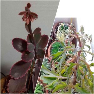 カランコエ属 冬もみじ 色うっす! 6/2の投稿の時は緑やったのに😮 紅葉の前ぶれかいな カランコエらしく上にめっちゃ伸びてます🙂