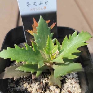 カランコエ属 冬もみじ クリスマスツリーを横から見たような葉の冬もみじ。 もみじに似ているかと言われると「?」ですが、ギザギザでいいですね。 ベッラデインベルノみたいに冬に紅葉するタイプなようです。 カランコエなんで上に伸びるのかな。