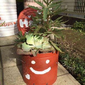 可愛くなくてごめんなさい🙇 昨日、近所の花屋さんで投げ売り状態の可哀想な多肉さんを少しだけ持ち帰りました(´༎ຶོρ༎ຶོ`) 早く植えなきゃって思って、うちにあったクッキーの缶にとりあえず…まとめてしまった💦 さて、下の2つは誰なんでしょうね❓ 左のワサワサしてる子は少し葉を切っても良いのかしら… どなたか教えて下さいな😊