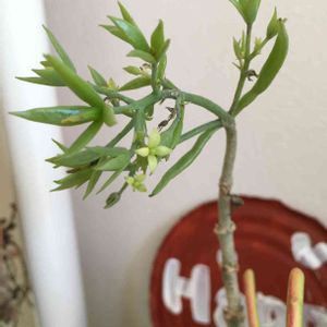 今気付いた…冬もみじのお花が咲いてました🍁黄緑の可愛いお花でした‼️葉っぱは一枚もありません…。何やら病気に?茎から赤ちゃんは出てきているのですが…微妙です。