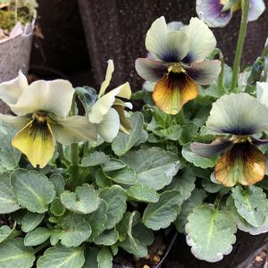 夏からのこぼれ種ビオラ達と、4枚目は去年の初秋に余った種をプランターにとりあえず豆撒きみたいに蒔いたら芽吹いてくれちゃったビオラです😝✌️ こぼれ種ビオラは夏にいつのまにか芽吹いて咲いてくれていたんですが、もうヒョロヒョロで徒長しまくりだったので、切り戻ししてから他の場所に植え直していたのが、やっとしっかりして咲いてきてくれました🎶🎶 なかなか可愛らしい色してます🤩 1枚目は多分エボルベの種かなぁ🤔 3枚目は…ヌー様かもしれない✨ 蕾もたくさん見えるのでこれからたくさん咲いてくれるはずです🎉🎉 4枚目のビオラはプランターから根っこごと鉢に移してからも元気に咲いてくれてます。 なかなか可愛らしい花色をしてます🌈✨ 他にはやっと正規の種蒔きビオラも蕾がチラホラ見えるようになりました。 きっと来週あたりから咲いてくるはずです😙✌️