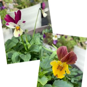 両方ともビオラ種蒔きっ子です🌱🌱 →は先日も投稿した、アンジュ風味のビオラです☀️ 日中見てもアンジュにやっぱり似てますね😳🎶 ←は、期待のNew種蒔きビオラです🎉 得意の⁉️紫ベースのビオラですが、ちょっとフリフリで黄色いグラデーションも見えるのでしっかり咲いたらどうなるか楽しみです😆👍