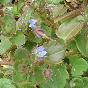 🪴草花たち その153 フラサバソウ いつも通る通路の脇に 小さな青い花がいつの間にか咲いていました。 一瞬イヌノフグリかと思いましたが、 葉っぱの形や様子がどうも違うなぁと なんだなんだと調べたら、 「フラサバソウ」に辿り着きました。 可愛い野に咲くお花です♪( ´▽`) 🌤 Wish for peace *・゜゚・*:.。..。.:*・'🌸'・🌿*:.。. .。.:*・゜゚・* ⌘ メモ ⌘ 🔸科名・属名 オオバコ科 クワガタソウ属 🔸学名 Veronica hederaefolia 🔸英名 ivy-leaved speedwell 🔸別名 ツタノハイヌノフグリ (蔦葉犬陰嚢) 🔸由来 この植物を再報告したフランスの学者Franchet とSavatierの頭文字をとったもの (余談だが、サバチェに協力した日本人技師が 佐波一郎だったという名前繋がりの面白い話も) 🔸原産地 ヨーロッパ 🔸花期 3月〜5月 🔸花色 淡青紫色 🔸特徴 越年草。匍匐性。畑や道ばたなどに生える。 1867年に長崎県で最初に報告され、全国に帰化 している。 茎は下部で枝分かれして横に広がり、先端はやや 直立する。まばらに長い毛がはえている。 茎の基部には花のころまで子葉が残るのが特徴。 葉は茎の下部では対生し、上部では互生する単葉 で、長さ0.7〜1cm、幅0.8〜1.2cmの広楕円形 で2〜4個の大きな鋸歯がある。また、やや 多肉質で光沢があり、両面に毛がまばらにはえて いる。 上部の葉腋から葉と同じくらいの長さの柄をだし て、直径3〜4mmの淡青紫色〜青紫色の花を1個 つける。花冠は4裂し、径2〜2.5mm。 雄蕊は2個、雌蕊は1個。 萼は先がとがった卵状三角形で、縁に長く白い毛 がはえている。 さく果は長さ2.5〜3mmのほぼ球形で先端がやや へこむ。種子は1〜3個で深い舟形。 このフラサバソウの花を白くしたような植物は 「コゴメイヌノフグリ」で東京都を中心に帰化が 知られている。