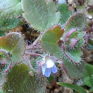 フラサバソウ🌿 これを発見した2人の植物学者(フランシェ氏とサバチェ氏)の名前から命名。葉が蔦の葉に似ていることから、ツタバイヌノフグリともいう。5ミリ程の花。 山道沿いに咲いていました。とても小さくて可憐に・・💓 ( It was blooming in a very small and lovely way. )