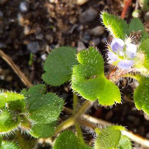 フラサバソウ イヌノフグリを見つけたあとこのフラサバソウの存在を知りました。 道端の縁に目を凝らしてじ〜👀っと見たら…ありました🤗 花はイヌノフグリ同様小さいですが、毛が多いわ〜😵 別名 ツタバイヌフグリというそうです。 こちらはオオイヌノフグリと同じく帰化植物なんですね😲 オオバコ科クワガタソウ属