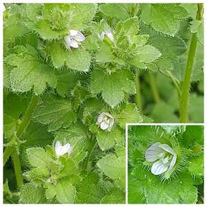 フラサバソウ 💠✨ (別名・ツタバイヌノフグリ) 道端シリーズ🌱✨(山道)です 残念な名前の雑草の代表「オオイヌノフグリ💠」に似てますが、 とても小さいです😲 イヌノフグリの中でも、 ・花が大きいのが「オオイヌノフグリ💠」、 ・花小さいのが「タチイヌノフグリ💠」 ・花が白いのが「コゴメノイヌノフグリ💠」 とされてるようですが、 この「フラサバソウ💠」は、見ての通り、 💡毛深い❕ ので、わりと見分けやすいかと思います😌 あと他のイヌノフグリたちに比べて、 葉っぱ🌱に鋸歯が少ないのですが、 形もちょっと3裂とか5裂とかしてるっぽく見えます(右上↗️ pic 📷✨) ツタの葉🌱っぽい❔ これが「ツタバイヌノフグリ」の名前の由来ですかね~😌 花は小さく、花弁の間に隙間がある感じです☝️ 同じ株で紫と白の花がついてるのが面白いなぁと思いました😌