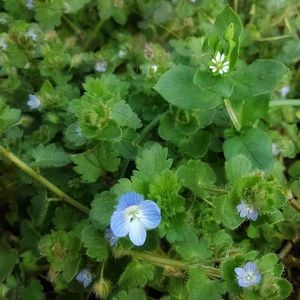 先週、実家近くで見つけた小さなカワイイ子たち… (๑・̑◡・̑๑)💕 タネツケバナ オランダミミナグサ ➕ コハコベ ➕ フラサバソウ ➕ オニノゲシ フユシラズ 💜フラサバソウ…別名・ツタバイヌフグリ よーく見ないとオオイヌノフグリと見間違えそうなぐらい、そっくりです❗️