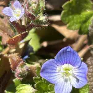 フランシェとサバチェのフラサバソウで ビューティフルサンデー😆 オオイヌノフグリもタチイヌノフグリも ハコベもフラサバソウも大好きです 家に何冊かある草花 雑草図鑑のうちで 名前が載っていたのは2冊だけ しかもどちらもオオイヌノフグリや タチイヌノフグリの頁の隅っこに チラッとオマケのように… 💠ヨーロッパ原産 花は淡青紫色で 萼の縁や葉の縁に毛が多いとだけ 書かれていました🤔 今回なかなかの群生地発見して テンション⤴︎⤴︎🥳🪅 p