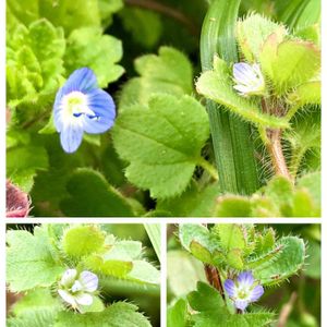 こんにちは🌞 ポカポカと暖かい日差しに誘われて 近所の公園までウォーキング👟 道端に咲く雑草 み〜つけた🌿 その(5) オオイヌノフグリ? 似てるけど、すごく小さい😆 この子ってもしかして フラサバソウ? @ウッチー29 さんから モサモサのヒゲだからフラサバソウでしょう❗️と教えていただきました🎶
