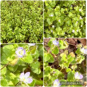散歩で見つけたフラサバソウ 星の瞳よりも小さな花 なのに毛深い🤣🤣🤣 別名ツタバイヌノフグリ 牧野富太郎博士はこの単語がお気に入り⁉️ 🏷美しく青きドヨウ