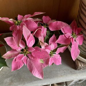 プリンセチアとポインセチア イベント好き、女子力強めの夫のために飾りました。 早速、オモチャみたいなクリスマスツリーを出して来た夫。 ウキウキしています。😆