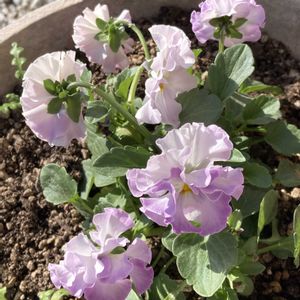 ビオラ 優しい色に惹かれて連れ帰って来ました。 よく咲くミルフルってラベルが付いていました。