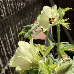 オクラの花 少し涼しくなったせいか、又花がつき始めました。 オクラの花は上品ですね。
