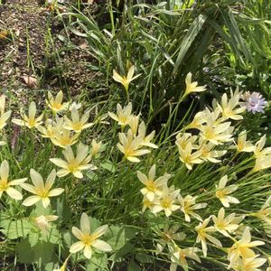 少し秋に近づいて、庭の花がポツポツと咲き出しました。 ①黄色のゼフランサス ②こぼれ種の金魚草 ③二色のペンタス ④こぼれ種の日々草 ⑤クーフェア