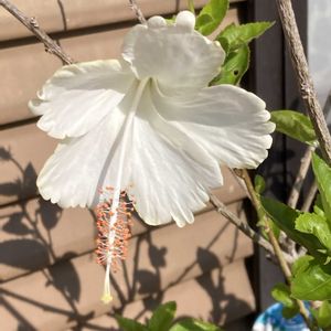 白いハイビスカス 枯れ枯れになって、もうダメかもしれないと思っていたのに小さめの花を咲かせてくれました。