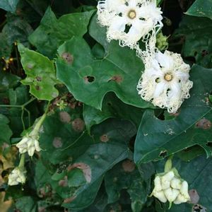 カラスウリ 20190806 2種類の花の形状があった👍 ナデシコみたいな花の方はキカラスウリという黄色の実がつく