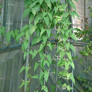 ヤマノイモ/ジネンジョ/ムカゴ 20190903 奥4西 ムカゴの花はのれんみたいでキレイだったけど、花も終わり実が付き始めた