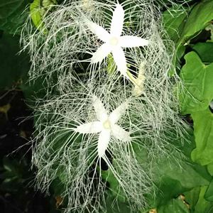 カラスウリ 20190802 いつもは🚲サ~ッと通り過ぎるのだけど、フワフワした花が気になったので📷 海に浮くクラゲみたい👾