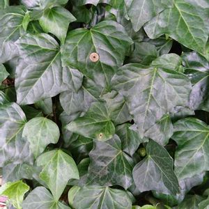 ヘデラへリックス 20190819 鴨 カナリエンシスと反対側の竹やぶにはヘデラヘリックス カナリエンシスより模様がハッキリしていて、サイズも一般的なアイビーに近い 五円玉と📷