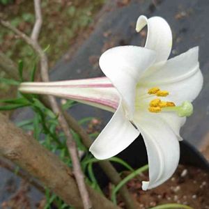 タカサゴユリ 20190827 鴨 紫のラインがしっかり入ったタカサゴユリ😊 勝手に生えて咲いていた💠 背丈が低いので、野生化したタカサゴユリとテッポウユリの合の子かも⁉️