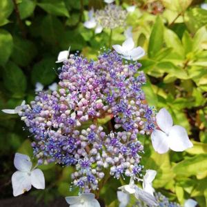 山紫陽花 アップで。 華やかなアジサイさん達とは違って地味なお花ですが、昔から我が家に咲いています😊