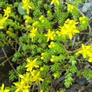 庭の一部にこのコが広がっています。 多肉の一種のようですが抜いても途中で切れてさらに広げている始末〰️😣お花は可愛いんですが~💦名前は?