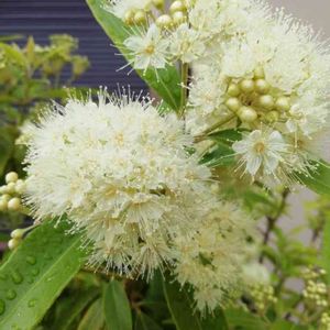 雨があがりました。 庭のレモンマートルがこんなに咲いてきました。大きな木になって私の背より高くなってしまった😵💧お花が終わったら剪定しなきゃ💦 葉っぱはレモンの香りがします。剪定後の枯れ枯れ🌿であってもごみ袋に詰めるときにいい香りがするんですよ😃 お花に昆虫が集まってくるのが難点😓