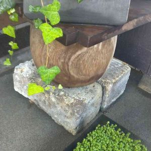 アイビーと苔が植えてある黒い焼き物は、何でしょう。なんて…🤭 これは、祖母が使っていた 昔のオコタなんですよ。 これに、小さなお布団を掛けて、ちょこっと温まっていたのでしょうね。😊